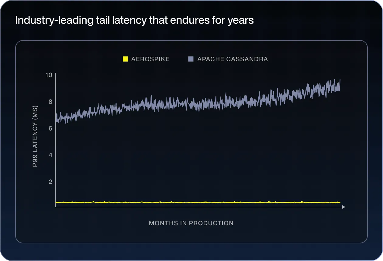 Moving our real-time session use case to Aerospike [from ElasticSearch and Couchbase] gained us predictable and persistent performance with linear scalability and 10x better latency, while reducing hardware costs by 40%.